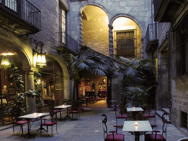 Tras una fachada de línea del gótico catalán aparece el patio barroco y su escalinata con columnas salomónicas que sostienen los arcos rampantes. Es en este espacio – Espai Barroc – donde se puede disfrutar de cenas medievales los sábados.
