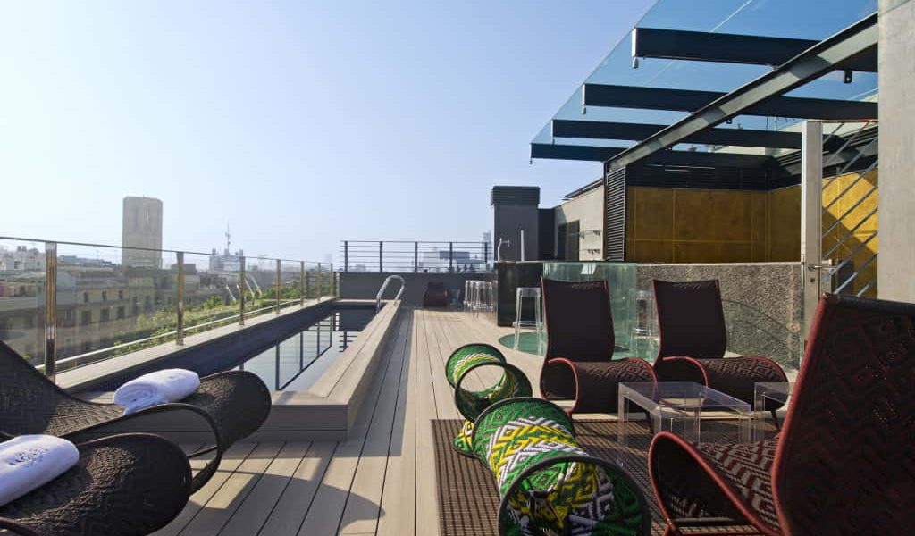 Situada en la azotea del hotel, con piscina y un ambiente de lujo excepcional, su decoración ha sido diseñada a medida y en exclusiva para el hotel con originales tumbonas de estilo italiano y piscina