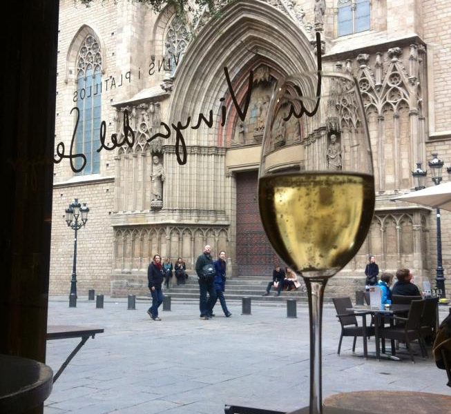 Deliciosa terraza donde degustar los mejores vinos y dejarse llevar por la imaginación al estar su terraza en la misma plaza donde está la mágicapuerta principal de la basílica de Santa María del Mar.
