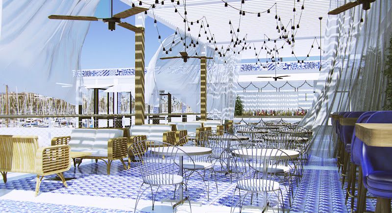 Enclavada en el mismo Moll d´Espanya,  las vistas de este balcón al mar con capacidad para 100 comensales, están cargadas de veleros y azul. Sin duda la interiorista  Lázaro Rosa- Violán ha logrado añadir, al sabor de la cocina marinera, un ambiente fresco, cercano y lleno de encanto.