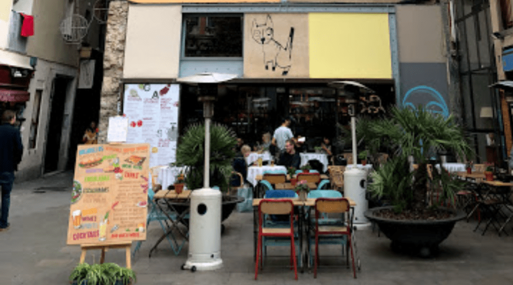 El encanto de esta terraza es su ubicación en una pequeña plaza arrancada a las callejuelas cercanas a Las Ramblas, y su diseño, pues los gatos colorean todas la fachada del edificio resultando un espectáculo visual.