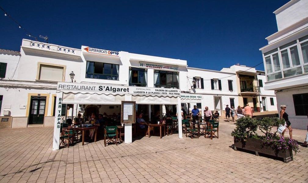 El restaurante S´Algaret pertenece a una fonda histórica de Fornells, y goza de una bonita terraza frente al edificio encalado y en una plaza adoquinada con vistas al puerto deportivo.